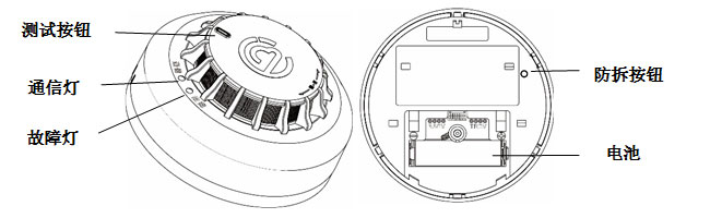 - 安装状态检测功能:该感烟报警器为可拆卸式感烟报警器,在感烟报警器在非安装状态下,黄色故障灯每5s闪烁3次,至故障解除。