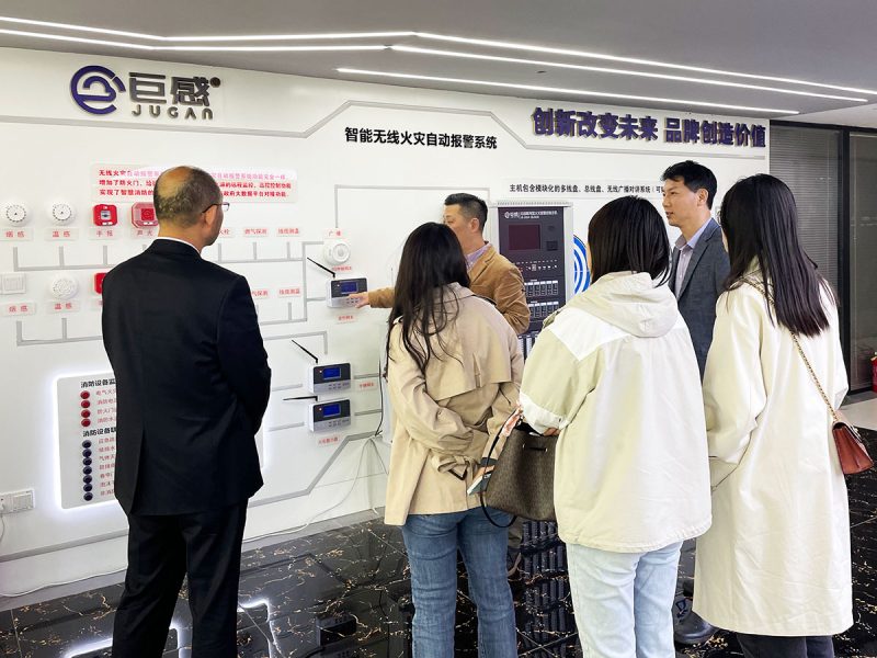 会谈结束后,双方来到巨感物联的产品展示厅,并观看了硬件产品和软件平台的现场演示。黄教授一行对巨感物联的全系统无线产品的系统优势表示了充分的肯定,双方也将就智慧消防在湖北地区的开展进行更深入的合作与交流。